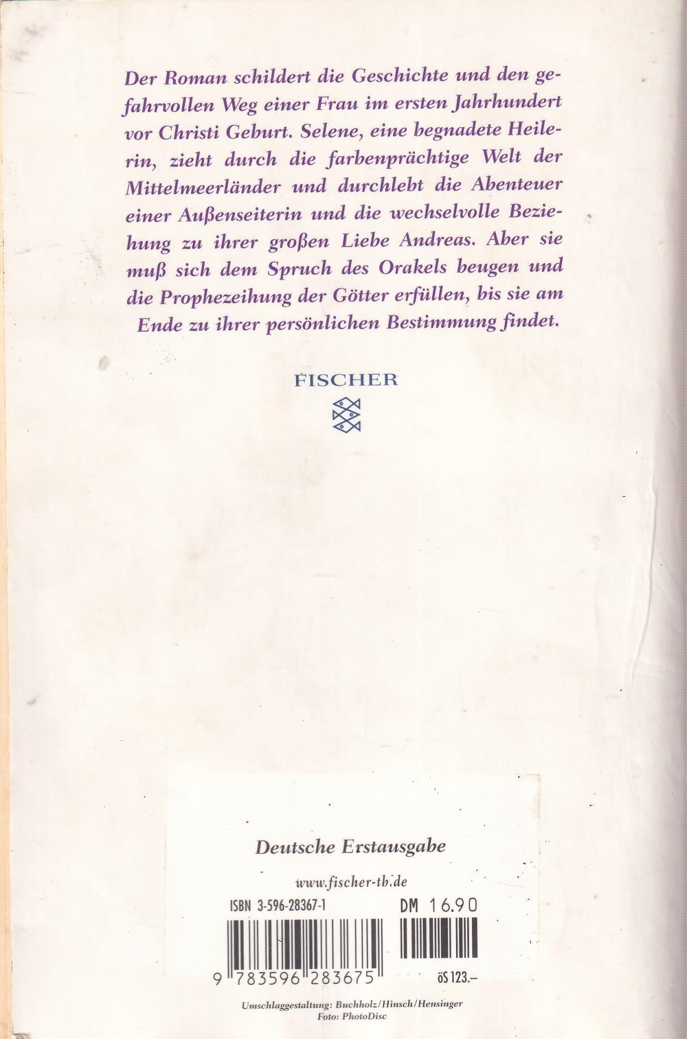 Der Roman schildert die Geschichte und den gefahrvollen Weg einer Frau im ersten Jahrhundert vor Christi Geburt. Selene, eine begnadete Heilerin, zieht durch die farbenprächtige Welt der Mittelmeerländer und durchlebt die Abenteuer einer Aussenseiterin und die wechselvolle Beziehung zu ihrer grossen Liebe Andreas. Aber sie muss sich dem Spruch des Orakels beugen und die Prophezeihung der Götter erfüllen, bis sie am Ende zu ihrer persönlichen Bestimmung findet.