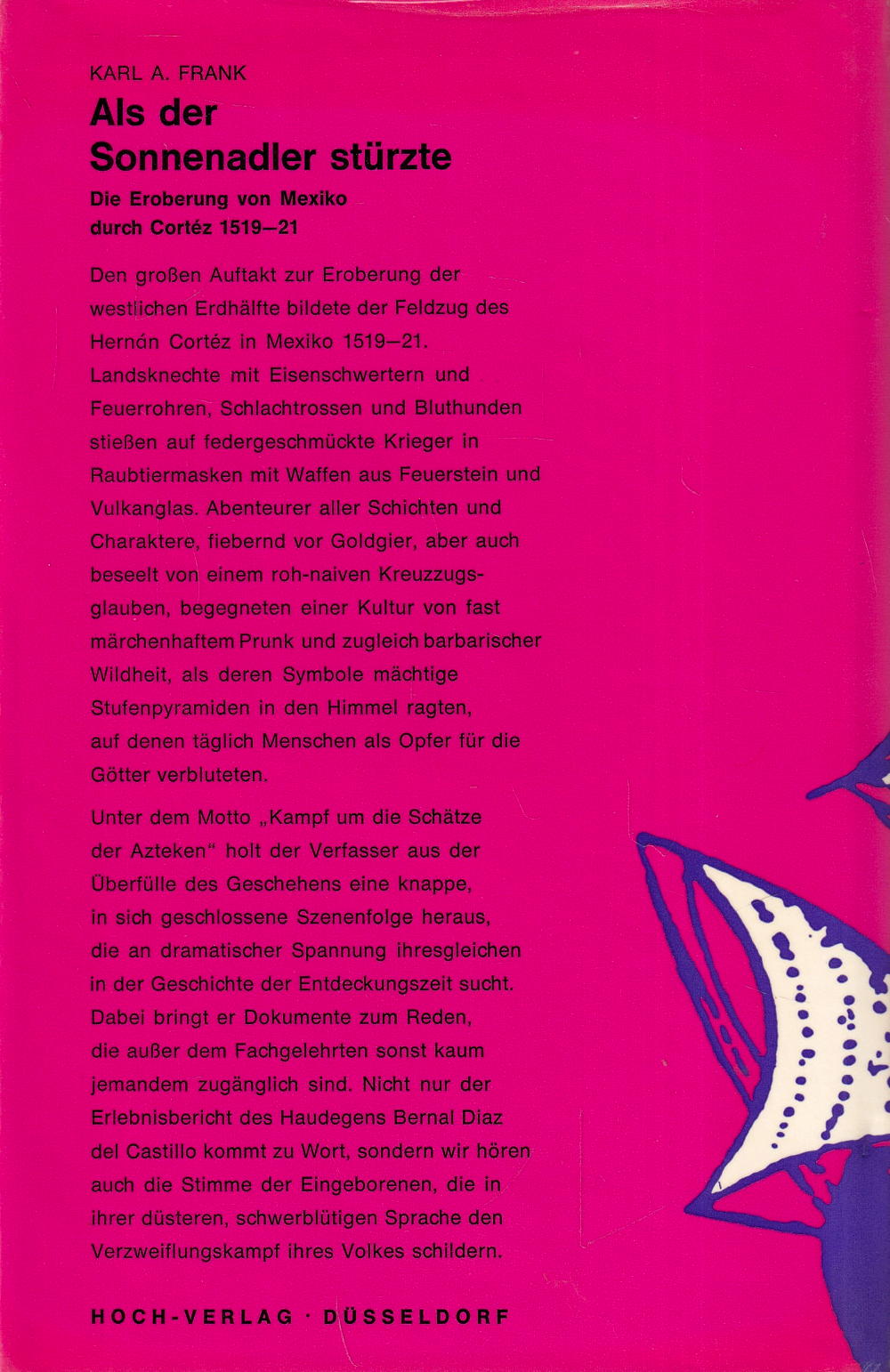 Unter dem Motto, Kampf um die Schätze der Azteken" holt der Verfasser aus der Überfülle des Geschehens eine knappe, in sich geschlossene Szenenfolge heraus, die an dramatischer Spannung ihresgleichen in der Geschichte der Entdeckungszeit sucht.