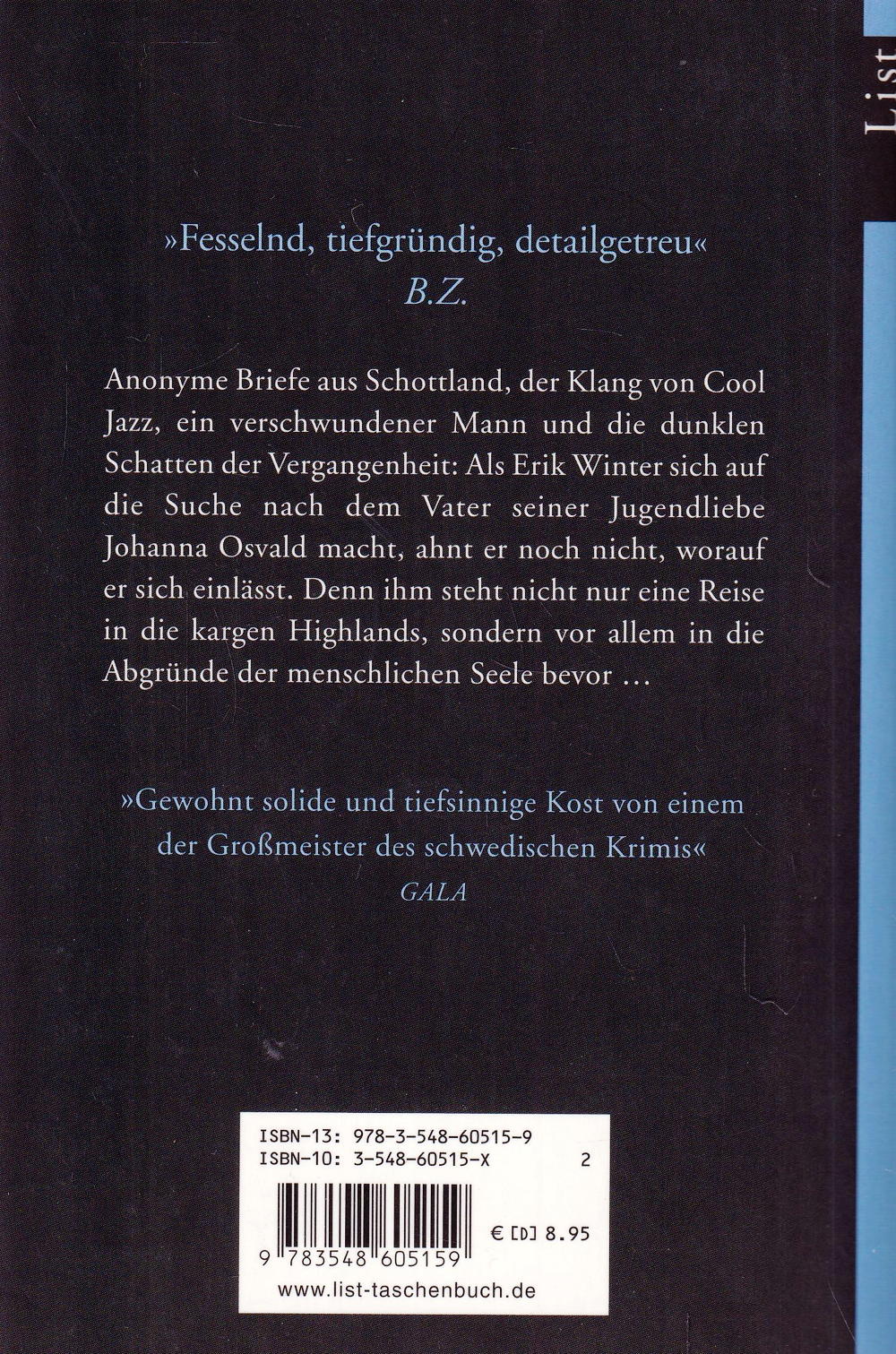 Anonyme Briefe aus Schottland, der Klang von Cool Jazz, ein verschwundener Mann und die dunklen Schatten der Vergangenheit: Als Erik Winter sich auf die Suche nach dem Vater seiner Jugendliebe Johanna Osvald macht, ahnt er noch nicht, worauf er sich einlässt. Denn ihm steht nicht nur eine Reise in die kargen Highlands, sondern vor allem in die Abgründe der menschlichen Seele bevor...