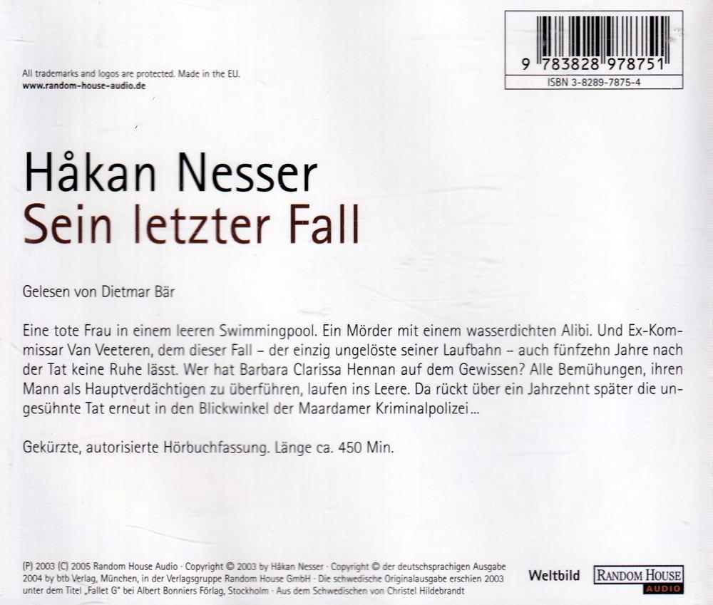 Eine tote Frau in einem leeren Swimmingpool. Ein Mörder mit einem wasserdichten Alibi. Und Ex-Kommissar Van Veeteren, dem dieser Fall – der einzig ungelöste seiner Laufbahn - auch fünfzehn Jahre nach der Tat keine Ruhe lässt. Wer hat Barbara Clarissa Hennan auf dem Gewissen? Alle Bemühungen, ihren Mann als Hauptverdächtigen zu überführen, laufen ins Leere. Da rückt über ein Jahrzehnt später die ungesühnte Tat erneut in den Blickwinkel der Maardamer Kriminalpolizei...