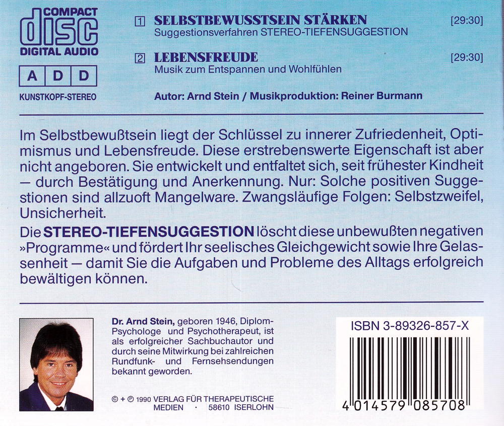 -Die STEREO-TIEFENSUGGESTION löscht diese unbewussten negativen »Programme« und fördert Ihr seelisches Gleichgewicht sowie Ihre Gelassenheit – damit Sie die Aufgaben und Probleme des Alltags erfolgreich bewältigen können.