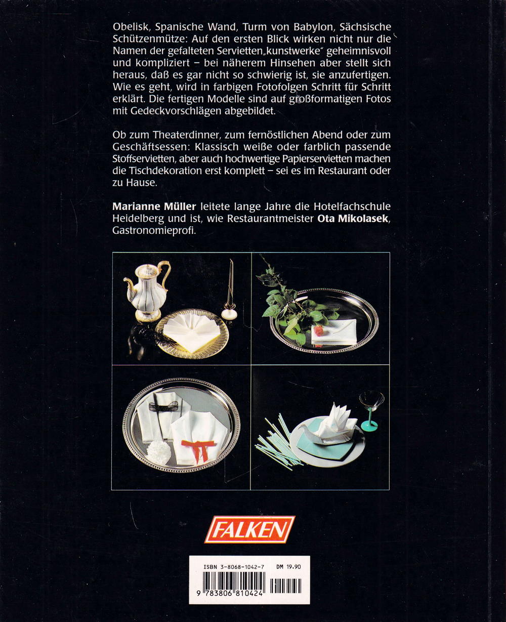 Ob zum Theaterdinner, zum fernöstlichen Abend oder zum Geschäftsessen: Klassisch weisse oder farblich passende Stoffservietten, aber auch hochwertige Papierservietten machen die Tischdekoration erst komplett - sei es im Restaurant oder zu Hause. Wie es geht, wird in farbigen Fotofolgen Schritt für Schritt erklärt. Die fertigen Modelle sind auf grossformatigen Fotos mit Gedeckvorschlägen abgebildet.