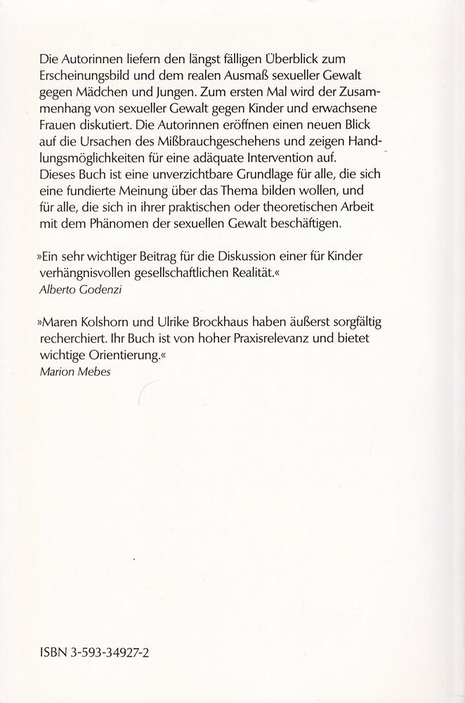 Die Autorinnen liefern den längst fälligen Überblick zum Erscheinungsbild und dem realen Ausmass sexueller Gewalt gegen Mädchen und Jungen. Zum ersten Mal wird der Zusammenhang von sexueller Gewalt gegen Kinder und erwachsene Frauen diskutiert. Die Autorinnen eröffnen einen neuen Blick auf die Ursachen des Missbrauchgeschehens und zeigen Handlungsmöglichkeiten für eine adäquate Intervention auf.