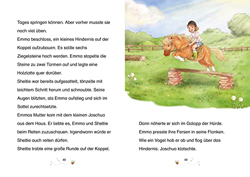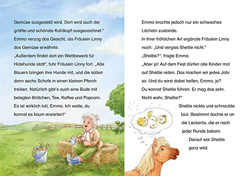 Lustige Pony-Abenteuer – viele bunte Bilder – einfach zu lesen! Zum Vorlesen und Lesen üben ab 7 Jahren. Lustig, klug und ganz schön frech – so ist Emmas Pony Sheltie. Gemeinsam erleben die beiden aufregende Abenteuer und haben eine Menge Spass! Emma will nicht aufs Land ziehen. Dort ist es bestimmt furchtbar langweilig! Es erwartet sie jedoch eine riesige Überraschung: Vor der Tür steht ein Pony, das ihr ganz allein gehören soll. Die beiden werden sofort dicke Freunde und so lässt das erste Abenteuer nicht lange auf sich warten.