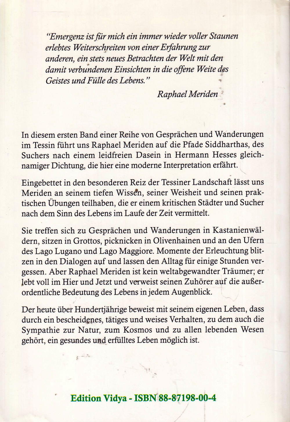 In diesem ersten Band einer Reihe von Gesprächen und Wanderungen im Tessin führt uns Raphael Meriden auf die Pfade Siddharthas, des Suchers nach einem leidfreien Dasein in Hermann Hesses gleichnamiger Dichtung, die hier eine moderne Interpretation erfährt.