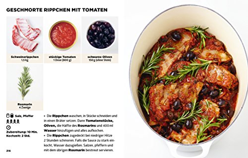 Wer denkt, dass es für Gäste und besondere Anlässe immer sehr aufwendig sein muss und es viele Stunden der Vorbereitung in der Küche braucht inklusive vieler exotischer Zutaten, die dann wieder in der ewigen Versenkung verschwinden, der wird hier staunen. Denn der französische Koch und Bestsellerautor Jean-François Mallet hat den Clou. In seinem Bestseller „Simplissime – Das einfachste Kochbuch der Welt“ entwickelt er Rezepte aus der Alltags- und Festtagsküche, die Eindruck machen, aber ganz leicht und in maximal 15 Minuten Vorbereitungszeit nachzukochen sind. Mallet reduziert lange Zutatenlisten auf maximal sechs essentielle Zutaten, wobei die meisten mühelos im Supermarkt zu bekommen sind und immer wieder eingesetzt werden können. Layout und Bildsprache in „Simplissime – Das einfachste Kochbuch der Welt“ sind stark vereinfacht und nur auf das Wesentliche reduziert. Im Fokus stehen die maximal sechs Zutaten. Auch die Kochanleitungen sind einfach gehalten und umfassen nur eine Handvoll Sätze. Ab jetzt kochen Sie Osso Bucco, Bœf Bourguignon, Ente und Ratatouille mit links. Ob Fleisch, Fisch, Gemüse oder Desserts – die bunte Vielfalt der internationalen Küche wird anschaulich erklärt für Herdhelden und alle, die es werden wollen.