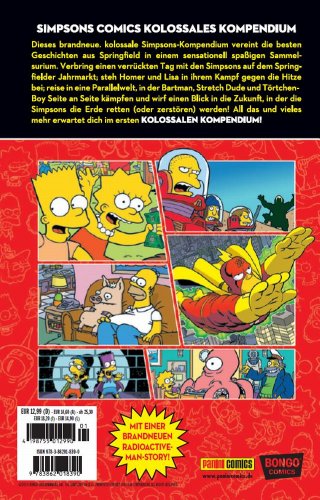 Dieses brandneue, kolossale Simpsons-Kompendium vereint die besten Geschichten aus Springfield in einem sensationell spassigen Sammelband. Verbring einen verrückten Tag mit den Simpsons auf dem Springfielder Jahrmarkt; steh Homer und Lisa in ihrem Kampf gegen die Hitze bei; reise in eine Parallelwelt, in der Bartman, Stretch Dude und Törtchen-Boy Seite an Seite kämpfen und wirf einen Blick in die Zukunft, in der die Simpsons die Erde retten (oder zerstören) werden! All das und vieles mehr erwartet dich im ersten Kolossalen Kompendium.