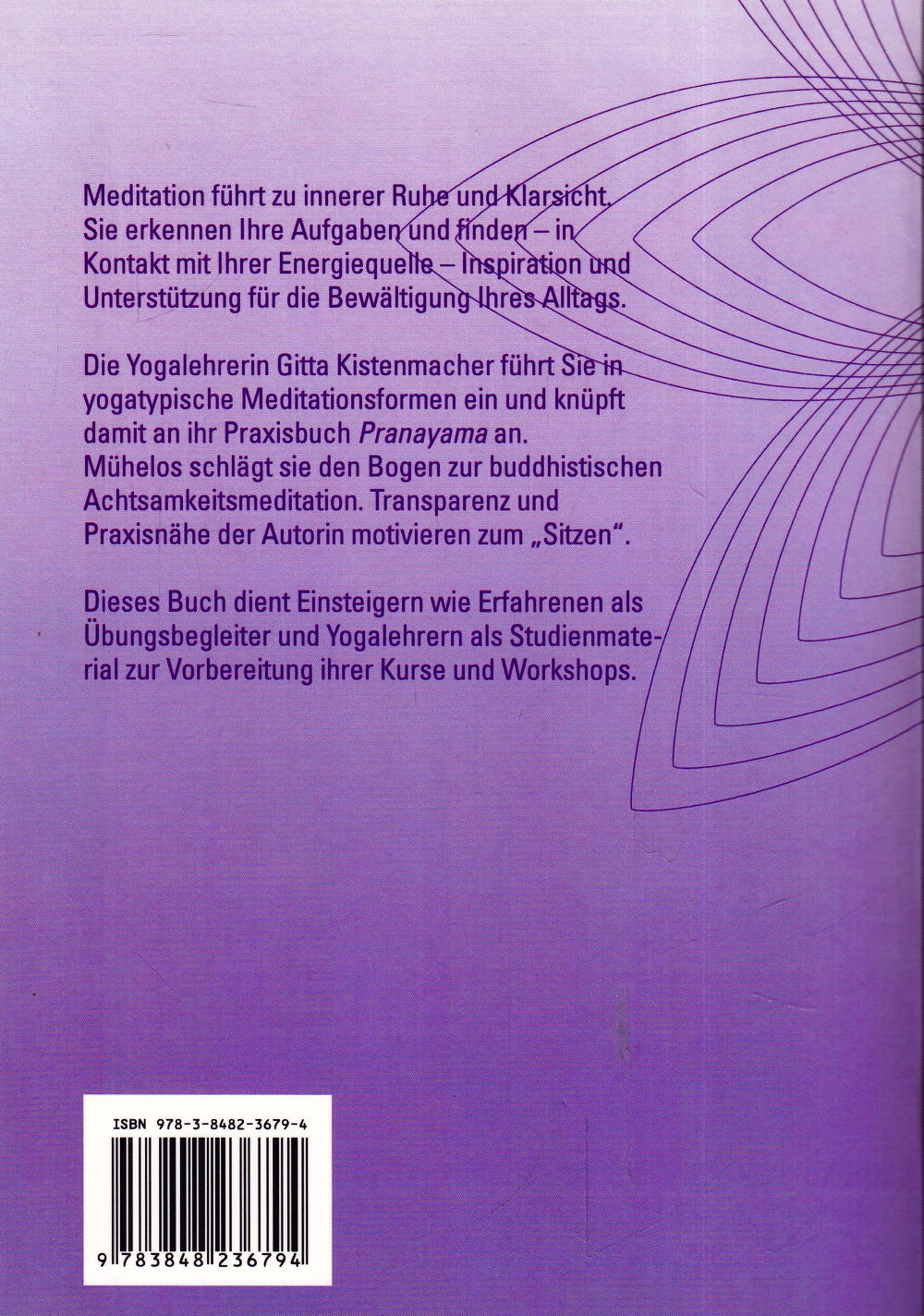 Meditation führt zu innerer Ruhe und Klarsicht. Sie erkennen Ihre Aufgaben und finden in Kontakt mit Ihrer Energiequelle - Inspiration und Unterstützung für die Bewältigung Ihres Alltags.Die Yogalehrerin Gitta Kistenmacher führt Sie in yogatypische Meditationsformen ein und knüpft damit an ihr Praxisbuch Pranayama an. Mühelos schlägt sie den Bogen zur buddhistischen Achtsamkeitsmeditation. Transparenz und Praxisnähe der Autorin motivieren zum Sitzen .Dieses Buch dient Einsteigern wie Erfahrenen als Übungsbegleiter und Yogalehrern als Studienmaterial zur Vorbereitung ihrer Kurse und Workshops.