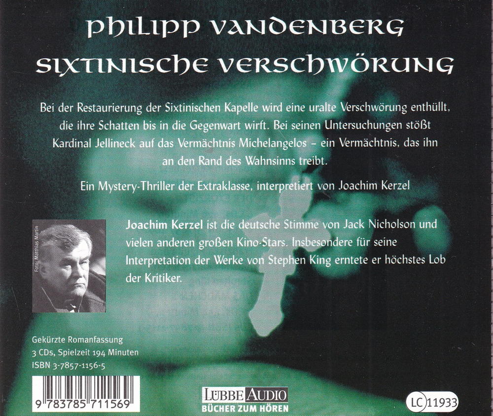 Bei der Restaurierung der Sixtinischen Kapelle wird eine uralte Verschwörung enthült, die ihre Schatten bis in die Gegenwart wirft. Bei seinen Untersuchungen stösst Kardinal Jellineck auf das Vermächtnis Michelangelos - ein Vermächtnis, das ihn an den Rand des Wahnsinns treibt.