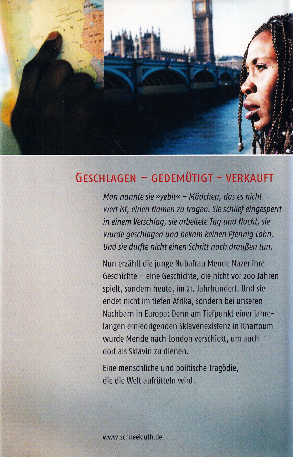 Nun erzählt die junge Nubafrau Mende Nazer ihre Geschichte - eine Geschichte, die nicht vor 200 Jahren spielt, sondern heute, im 21. Jahrhundert. Und sie endet nicht im tiefen Afrika, sondern bei unseren Nachbarn in Europa: Denn am Tiefpunkt einer jahrelangen erniedrigenden Sklavenexistenz in Khartoum wurde Mende nach London verschickt, um auch dort als Sklavin zu dienen.
