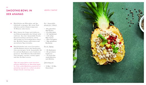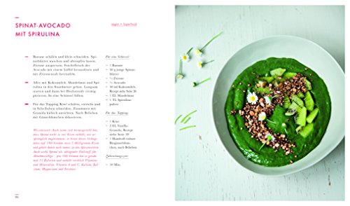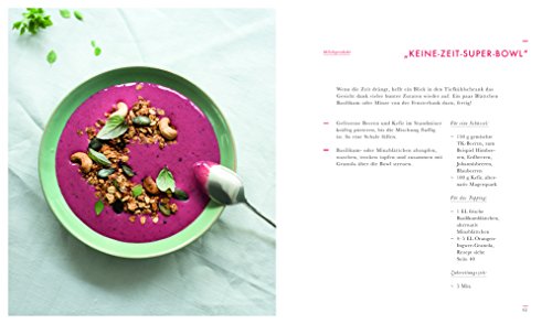Sie werden von einem Smoothie nie satt, egal wie gut er schmeckt? Dann gibt es für Sie jetzt eine gesunde und leckere Alternative, um voller Energie durch den Tag zu kommen: Smoothie-Bowls. Dafür werden cremige Smoothies aufgepeppt mit allem, was in eine Schüssel passt: Obst, Nüsse, Samen, Superfoods oder Granola, nicht zu vergessen die Toppings. So entsteht ein schmackhafter Powersnack, der sich nicht nur bestens als Frühstück eignet, sondern der auch mal ein Mittagessen ersetzen oder über das Nachmittagstief hinweghelfen kann. Damit Sie gleich loslöffeln und geniessen können, finden Sie in diesem Buch über 50 abwechslungsreiche Rezepte plus die wichtigsten Infos rund um Zutaten und Zubereitung.