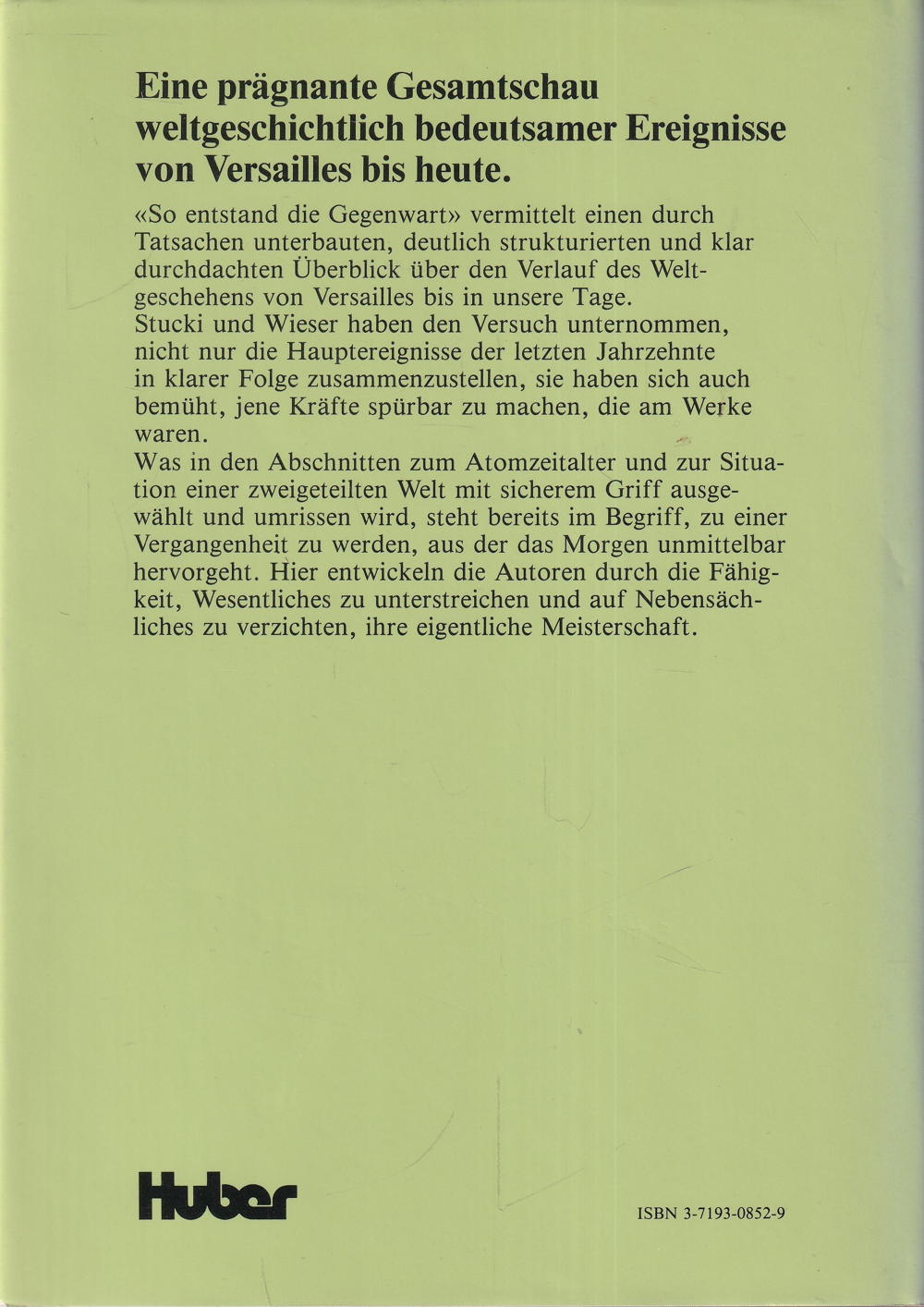 «So entstand die Gegenwart» vermittelt einen durch Tatsachen unterbauten, deutlich strukturierten und klar durchdachten Überblick über den Verlauf des Weltgeschehens von Versailles bis in unsere Tage.