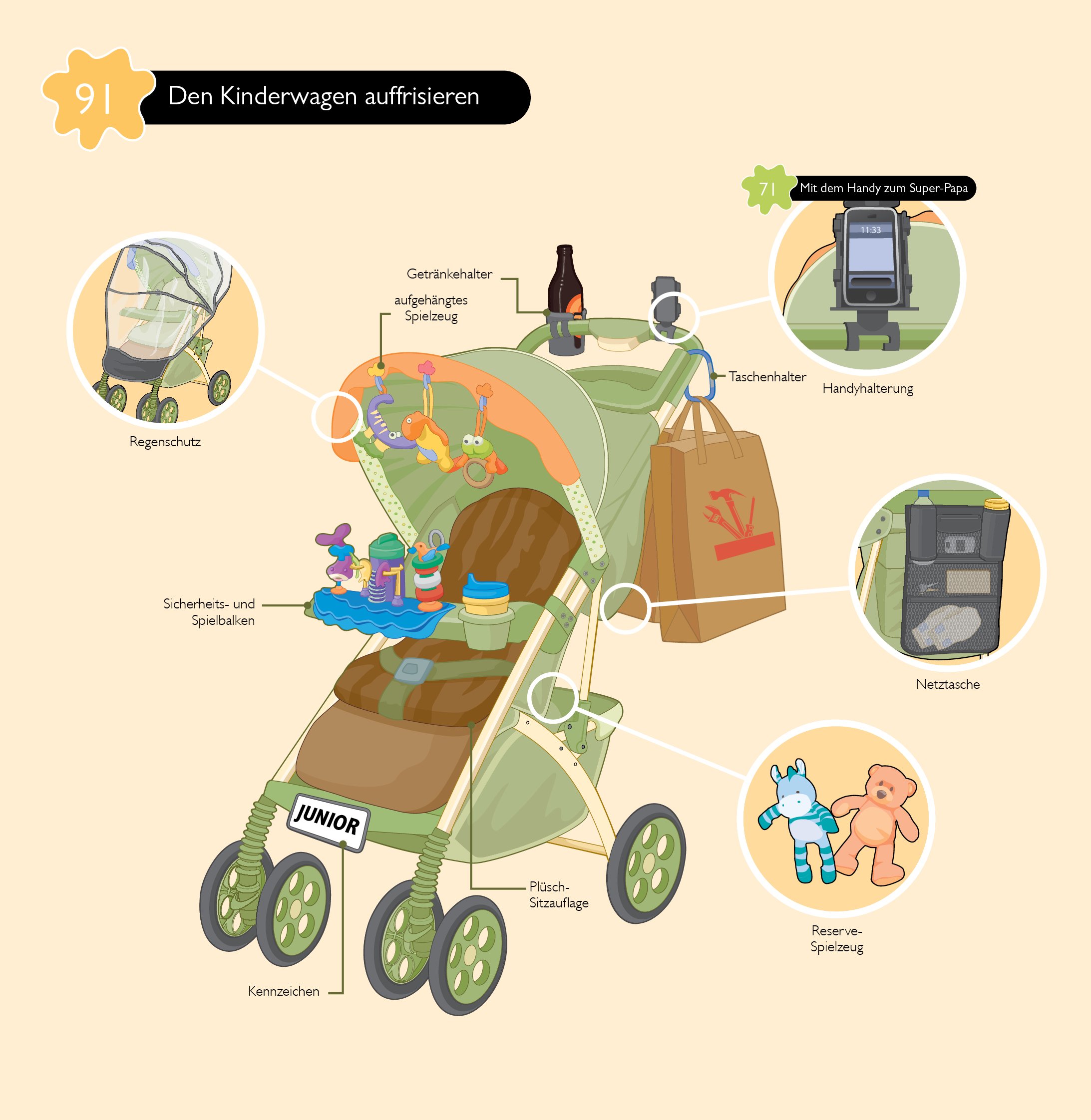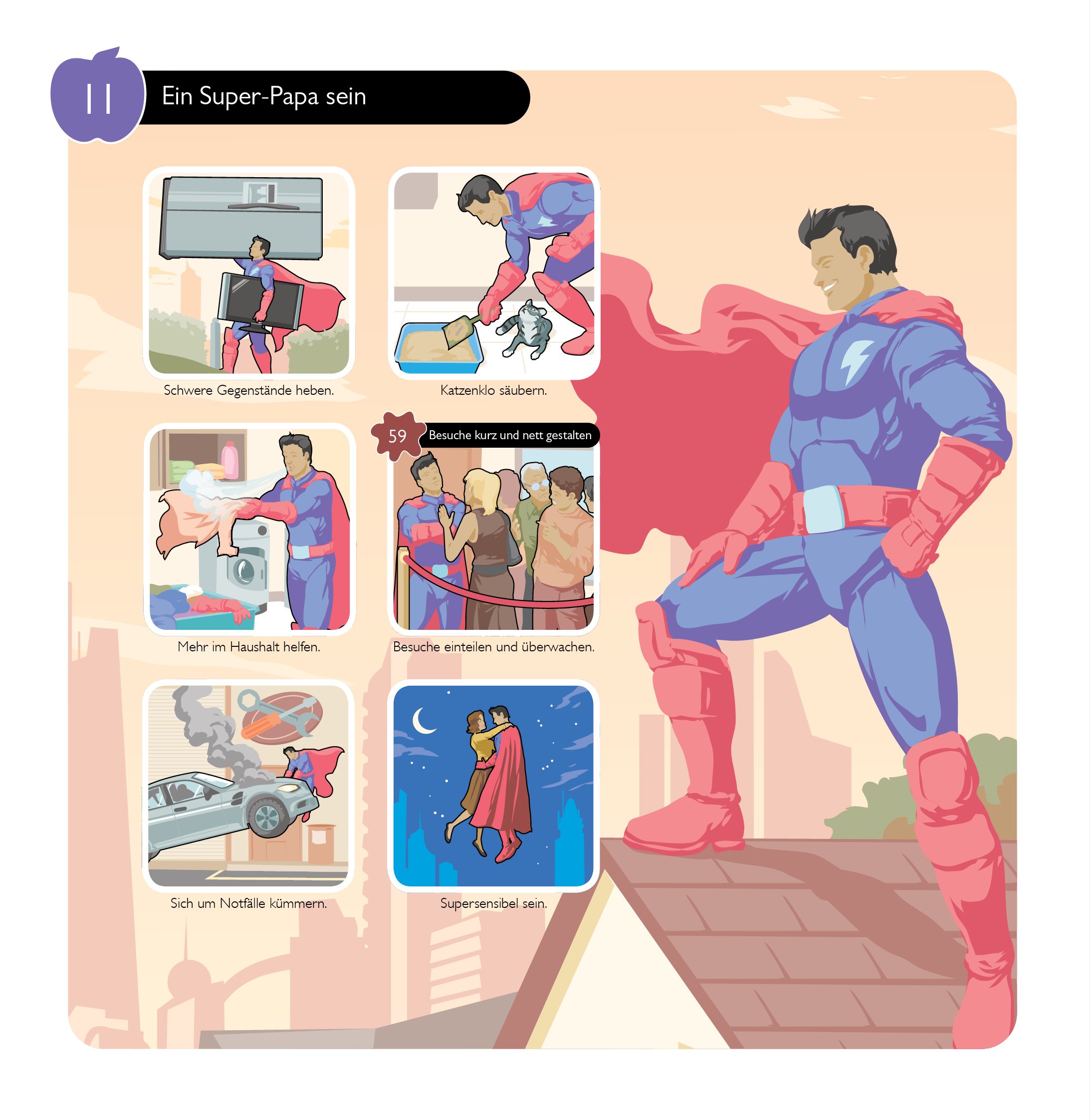 144 Schritt-für-Schritt-Anleitungen bereiten frischgebackene wie werdende Väter auf unterhaltsame, witzige und einprägsame Art auf ihre neue Rolle vor. So wird aus jedem Vater schnell ein echter "Superpapa", den nichts mehr schreckt: vom Füttern, Baden und Wickeln bis hin zur kindersicheren Wohnung. Ausserdem zahlreiche Tipps rund ums Thema Spielen und Spielzeugbauen.