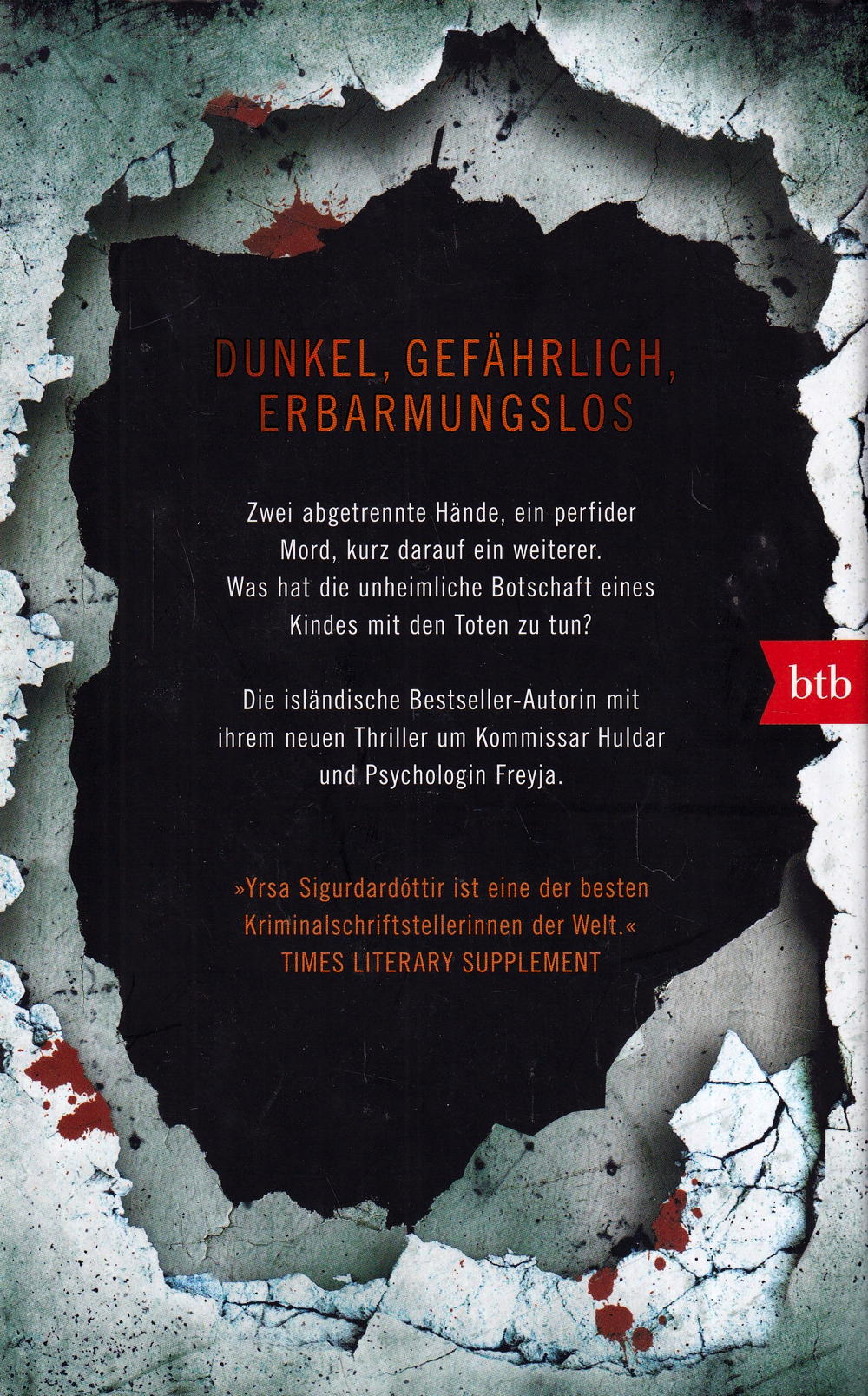 Ein Fall für Kommissar Huldar, der sich beweisen muss: von seinen Leitungsaufgaben entbunden, wird er von den meisten seiner früheren Untergegebenen gemieden, die Beziehung zur Kinderpsychologin Freyja ist ebenfalls ruiniert, was er zu reparieren hofft, indem er sie in die jetzigen Ermittlungen mit einbezieht ...