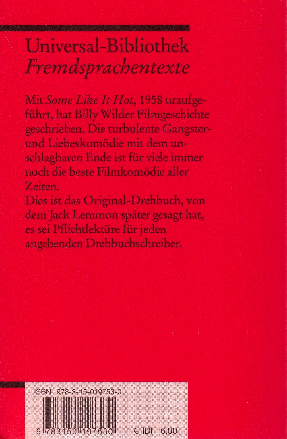 Fünfzig Jahre nach ihrer Erstaufführung hält die beste Filmkomödie aller Zeiten Einzug in Reclams Rote Reihe. Dies ist das Original-Drehbuch, von dem Jack Lemmon später gesagt hat, es sei Pflichtlektüre für jeden angehenden Drehbuchschreiber. Es enthält auch die gestrichene (und sehr komische) Szene, in der Lemmon im Schlafwagen zu Tony Curtis in die Koje klettert.