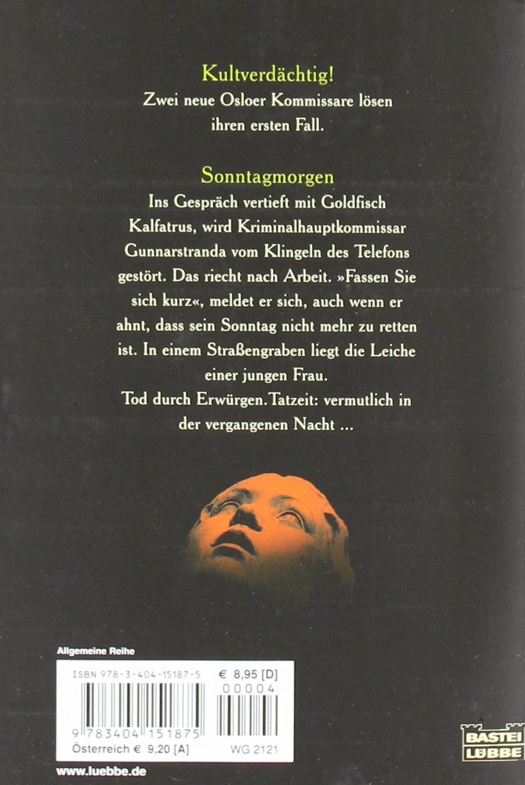 Der 1. Fall der Osloer Komissare Gunnarstranda und Frølich Sonntagmorgen: Ins Gespräch vertieft mit Goldfisch Kalfatrus, wird Kriminalkomissar Gunnarstranda vom Klingeln des Telefons gestört. Das riecht nach Arbeit. "Fassen Sie sich kurz", meldet er sich, auch wenn er ahnt, dass sein Sonntag nicht mehr zu retten ist. In einem Strassengraben liegt die Leiche einer jungen Frau. Tod durch Erwürgen. Tatzeit: vermutlich in der vergangenen Nacht ...