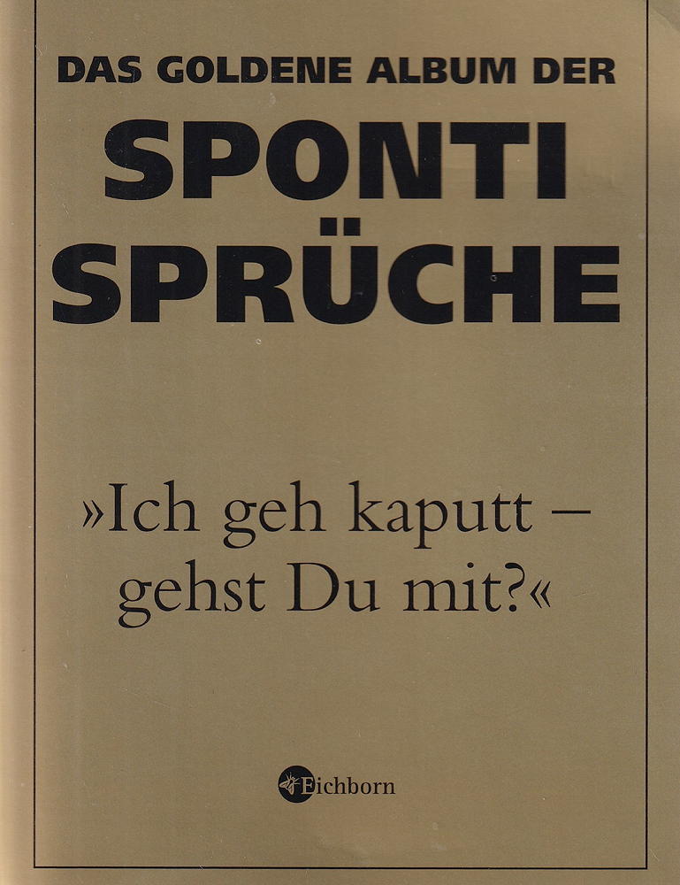 Die 80 er - das war die grosse Zeit der Sponti-Sprüche. Auf Kneipenklos, an Häuserwänden, auf dem Campus und in den WGs zündete man ein Feuerwerk der Phantasie - bunt, komisch und ziemlich schräg. Dieses Büchlein versammelt die Klassiker der Sponti-Kultur, von »Legalize Erdbeereis« über »Marx ist tot, Einstein ist tot und mir ist auch schon ganz schlecht« bis zu »Weg mit den Alpen - freie Sicht aufs Mittelmeer! « kostbare Fundstücke aus einer Zeit, in der das Leben noch lustig war.
