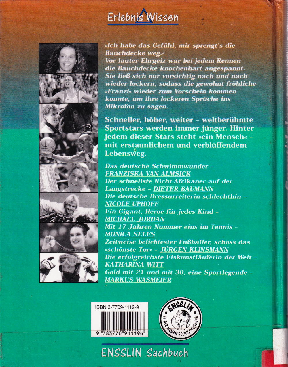 Ich habe das Gefühl, mir sprengt's die Bauchdecke weg. Vor lauter Ehrgeiz war bei jedem Rennen die Bauchdecke knochenhart angespannt. Sie liess sich nur vorsichtig nach und nach wieder lockern, sodass die gewohnt fröhliche Franzix wieder zum Vorschein kommen konnte, um ihre lockeren Sprüche ins Mikrofon zu sagen. Schneller, höher, weiter weltberühmte Sportstars werden immer jünger. Hinter jedem dieser Stars steht ein Mensch mit erstaunlichem und verblüffendem Lebensweg.