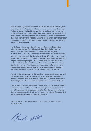 Dieses Buch ist der erfolgreiche Schlüssel zur Kommunikation zwischen Mensch und Hund. Hier wird nicht nur der Vierbeiner beleuchtet, sondern auch die Körpersprache des Zweibeiners ins Visier genommen. Martin Rütter gelingt es in seiner gewohnt frischen und lockeren Art, das Bewusstsein für die eigene Sprache zu wecken, den Blick für die Signale der Hunde zu schärfen und somit die Kommunikation zwischen Mensch und Hund zu verfeinern.