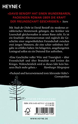 Mit Stadt der Diebe gelang David Benioff ein modernes erzählerisches Meisterwerk, das Kritiker wie Leserschaft gleichermassen in seinen Bann zog. Es ist ein fesselnder Abenteuerroman und zugleich die Geschichte einer ungewöhnlichen Freundschaft zwischen zwei jungen Männern, die eine schier unlösbare Aufgabe zu erfüllen haben: Im belagerten, ausgehungerten Leningrad sollen sie ein Dutzend Eier auftreiben.