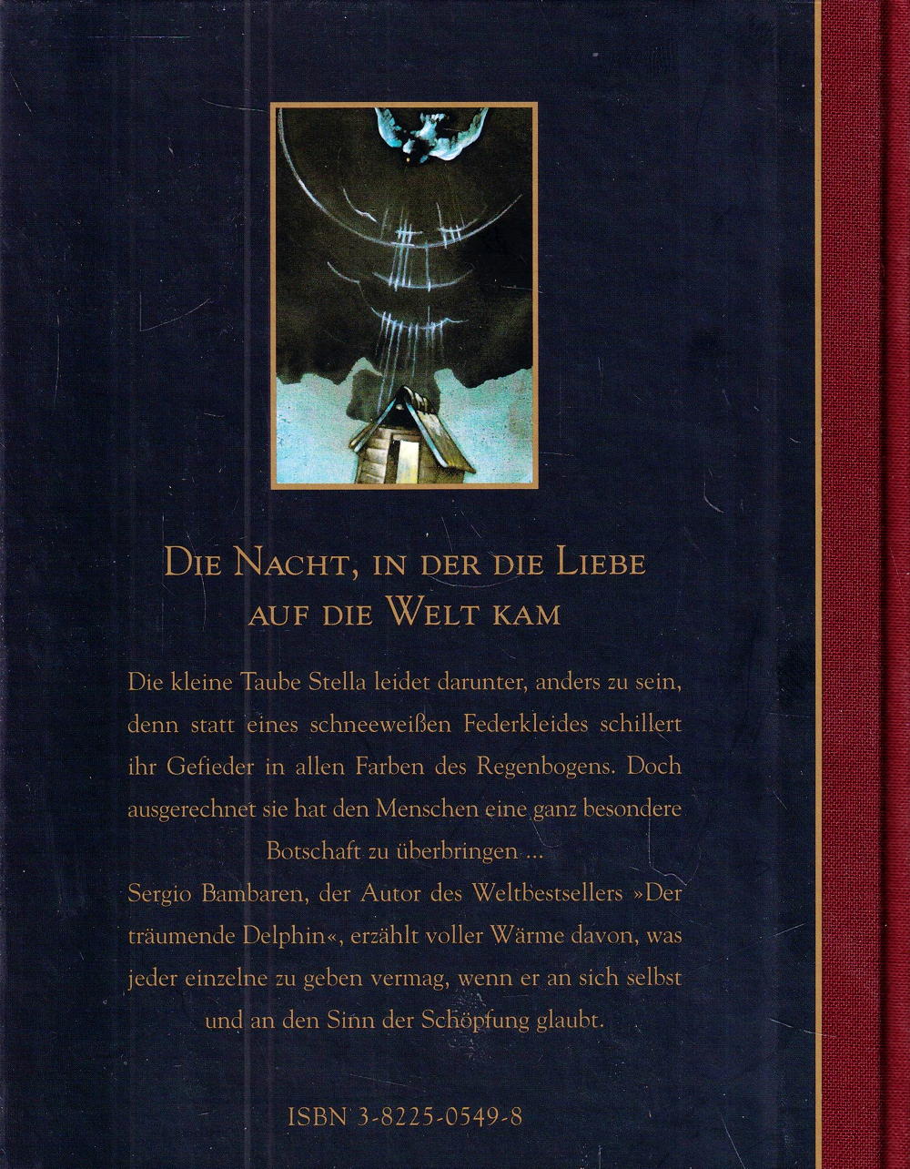 Jedes Geschöpf hat auf Erden eine Mission zu erfüllen – das ist die Wahrheit, die das Täubchen Stella in der Heiligen Nacht begreift. Von Anfang an ist Stella anders als ihre Eltern und Geschwister, denn statt eines schneeweissen Federkleides schillert ihr Gefieder in allen Farben des Regenbogens. Nur der weise Uhu ahnt, dass Stella eine besondere Rolle zugedacht ist. Und als in einem einfachen Stall in der Ferne ein aussergewöhnliches Kind geboren wird, folgt Stella der Stimme ihres Herzens und tritt ihre grösste und wichtigste Reise an. Sergio Bambarens Bücher begeistern die Leser, »Der träumende Delphin« steht seit zwei Jahren ununterbrochen auf der Bestsellerliste. »Stella«, ein poetisches Bekenntnis zur Nächstenliebe, erzählt voller Wärme davon, was jeder einzelne zu leisten vermag, wenn er an sich selbst und an den Sinn der Schöpfung glaubt. Zauberhafte Illustrationen machen dieses Buch zu einem wunderschönen Weihnachtsgeschenk.