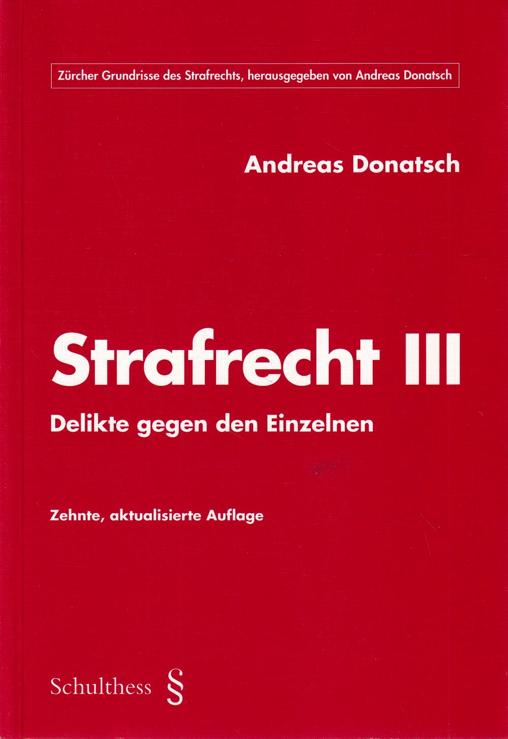 Im 'Strafrecht III' aus der Reihe der 'Zürcher Grundrisse des Strafrechts' werden die ersten fünf Titel des Besonderen Teils des StGB behandelt, also die Delikte gegen Leib und Leben, das Vermögen, die Ehre und den Geheim- und Privatbereich, die Freiheit und die sexuelle Integrität (Art. 111–200 StGB). Wie in der Vorauflage werden die für die Handhabung der einschlägigen Bestimmungen des StGB wesentlichen Gesichtspunkte unter Einbezug von Praxis sowie Lehre erörtert. Der Text ist ergänzt und auf den neuesten Stand gebracht, verschiedene Teile sind vollständig überarbeitet worden (Stand: Mai 2013) oder neu ('Verstümmelung weiblicher Genitalien', 'Zwangsheirat, erzwungene Partnerschaft'). Wichtige Begriffe der strafrechtlichen Terminologie, so die Bezeichnung der Tatbestände, werden jeweils in franz., ital. und engl. Sprache aufgeführt.