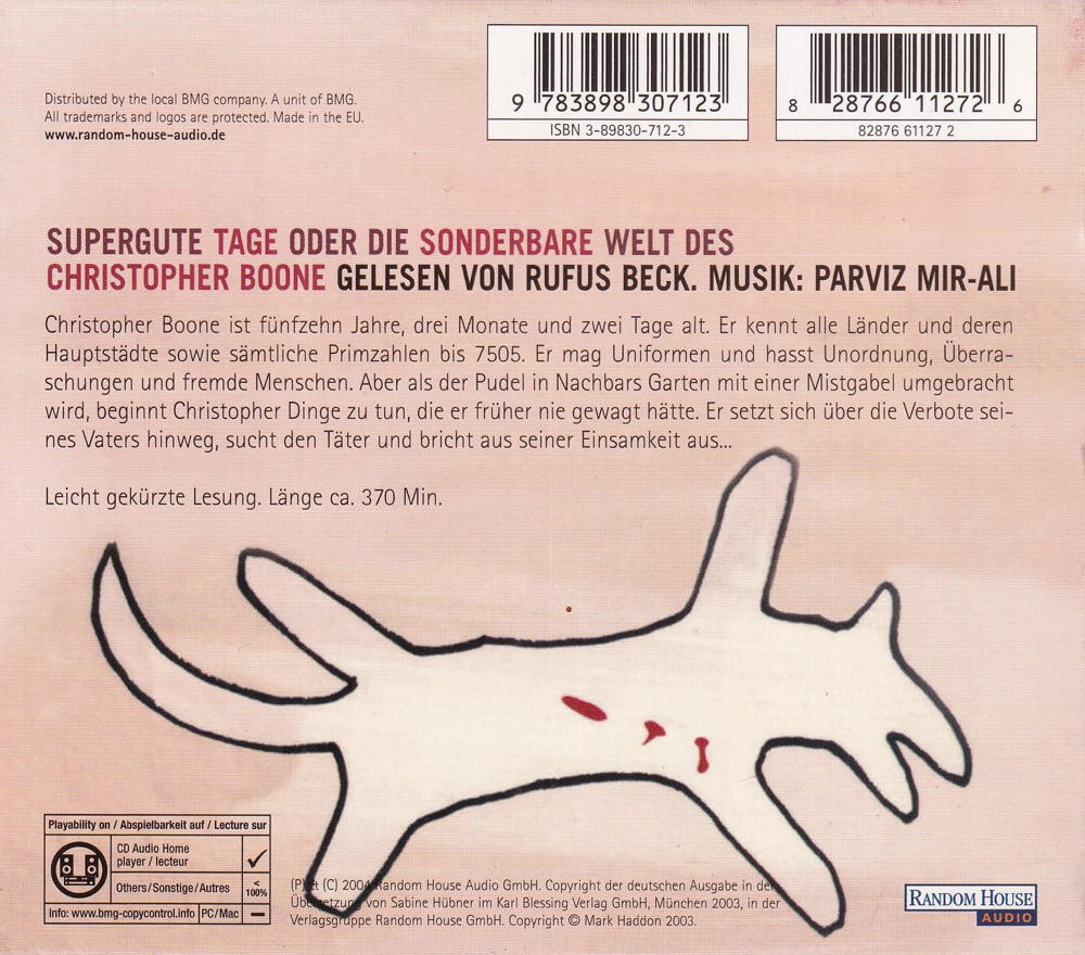 Christopher Boone ist fünfzehn Jahre, drei Monate und zwei Tage alt. Er kennt alle Länder und deren Hauptstädte sowie sämtliche Primzahlen bis 7505. Er mag Uniformen und hasst Unordnung, Überraschungen und fremde Menschen. Aber als der Pudel in Nachbars Garten mit einer Mistgabel umgebracht wird, beginnt Christopher Dinge zu tun, die er früher nie gewagt hätte. Er setzt sich über die Verbote seines Vaters hinweg, sucht den Täter und bricht aus seiner Einsamkeit aus..