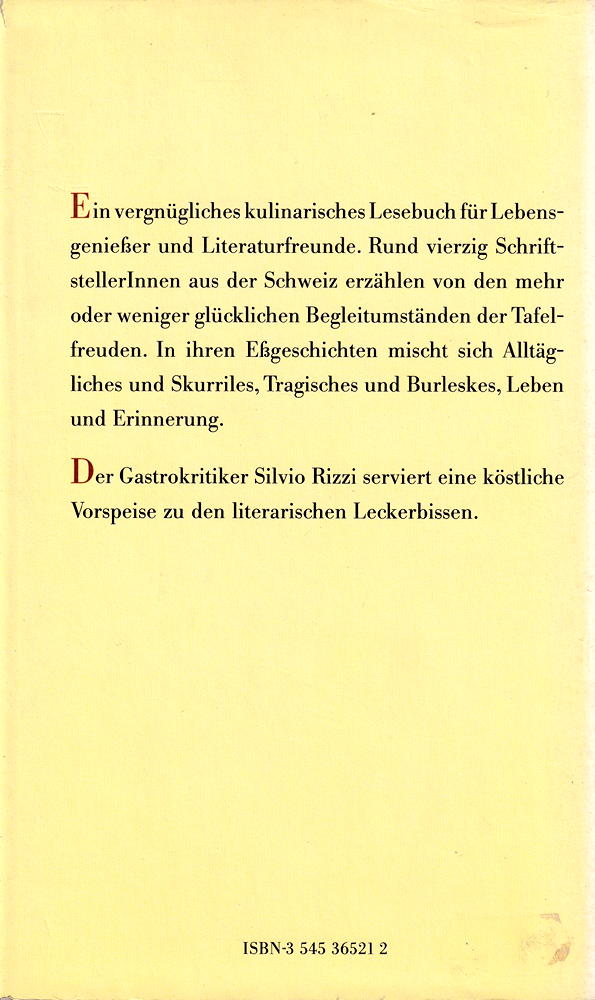 Ein vergnügliches kulinarisches Lesebuch für Lebensgeniesser und Literaturfreunde. Rund vierzig SchriftstellerInnen aus der Schweiz erzählen von den mehr oder weniger glücklichen Begleitumständen der Tafelfreuden. In ihren Ekgeschichten mischt sich Alltägliches und Skurriles, Tragisches und Burleskes, Leben und Erinnerung.