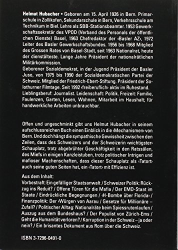 Offen und ungeschminkt gibt uns Helmut Hubacher in seinem aufschlussreichen Buch einen Einblick in die ‹Mechanismen von Bern. Und doch hängt die sympathische Gewissheit zwischen den Zeilen, dass des Schweizers und der Schweizerin