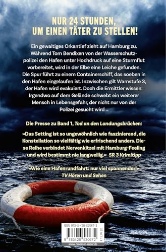 »Tatort Hafen – Tod im Schatten der Elbflut« ist der 2. Band der rasanten Krimi-Reihe rund um den Hamburger Hafen: Dem Team bleiben nur 24 Stunden, um ein Leben zu retten – während Hamburg von einem Jahrhundert-Unwetter bedroht wird. Ein gewaltiges Orkantief wühlt die Nordsee auf und zieht auf Hamburg zu. Wasserschutz-Polizist Tom Bendixen bereitet den Hafen unter Hochdruck auf eine Sturmflut vor. Währenddessen wird in der Elbe die Leiche eines Afrikaners gefunden. Mordermittlerin Jonna Jacobi findet heraus, dass der Tote auf einem Containerschiff war, das eben in den Hafen eingelaufen ist. Bei der Durchsuchung des Schiffes entdeckt die Wasserschutzpolizei eine blinde Passagierin mit einem kleinen Kind – ausserdem scheint ein Crewmitglied zu fehlen. Jonna bittet Charlotte Severin vom Opferschutz, die verängstigte Mutter zu betreuen und zu befragen. Inzwischen gilt Warnstufe 3, der Hafen wird evakuiert. Doch irgendwo auf dem Gelände schwebt ein weiterer blinder Passagier in Lebensgefahr: Das Wasser steigt unerbittlich – und der Mann wird als Zeuge nicht nur von der Polizei gesucht …