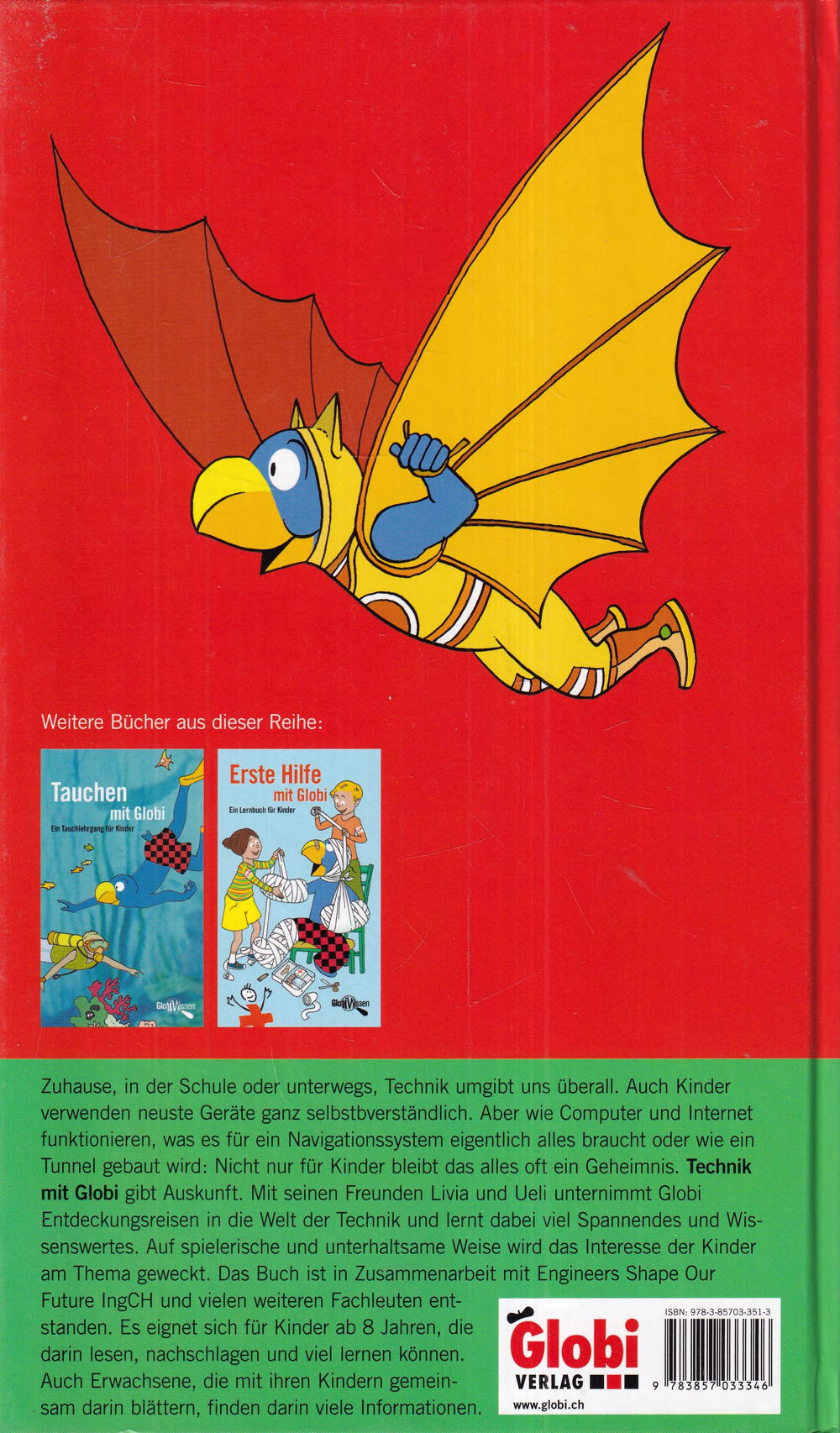 Zuhause, in der Schule oder unterwegs, Technik umgibt uns überall. Aber wie funktioniert zum Beispiel der Computer, eine Brezelmaschine, das Internet, wie wird ein Tunnel gebaut? Was geschieht beim Röntgen genau und was kann ein intelligentes Haus? Diesen und vielen Fragen mehr, geht Globi nach. Zusammen mit Ueli und Livia erkundet er die Welt der Technik, fragt Leute die es wissen müssen und hat alle Informationen für dieses Buch zusammengetragen.