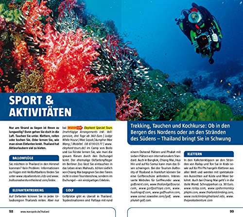 Insider-Tipps und noch viel mehr: Erleben Sie mit MARCO POLO Thailand intensiv von Chiang Mai im Norden bis nach Phuket im Süden - mit dem MARCO POLO Reiseführer kommen Sie sofort in Thailand an. Erfahren Sie, welche Highlights Sie neben der Palastanlage in Bangkok und einer Trekkingtour in der Bergwelt Nordthailands nicht verpassen dürfen, wo Sie noch eine Suite im Luxushotel für unter 100 Euro bekommen und dass Sie in Mae Sopok bei einem emigrierten Berliner den Elefanten- Führerschein machen können. Mit den MARCO POLO Ausflügen und Touren erkunden Sie Thailand auf besonderen Wegen und mit den Low-Budget-Tipps sparen Sie bares Geld. Die Insider-Tipps des Autors lassen Sie Thailand individuell und authentisch erleben. In jedem Band gibt es einen übersichtlichen Reiseatlas und eine herausnehmbare Faltkarte, in die natürlich auch die Ausflüge & Touren eingetragen sind.