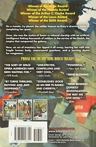 An act of treachery has ripped it all away, leaving her with only one fragile human body. And only one purpose -- to revenge herself on Anaander Mianaai, many-bodied, near-immortal Lord of the Radch.