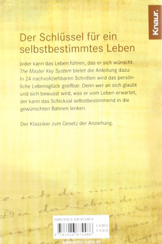 Jeder kann das Leben führen, das er sich wünscht. The Master Key System bietet die Anleitung dazu: In 24 nachvollziehbaren Schritten wird das persönliche Lebensglück plötzlich greifbar. Denn wer an sich glaubt und sich bewusst wird, was er vom Leben erwartet, der kann das Schicksal bestimmend in die gewünschten Bahnen lenken.