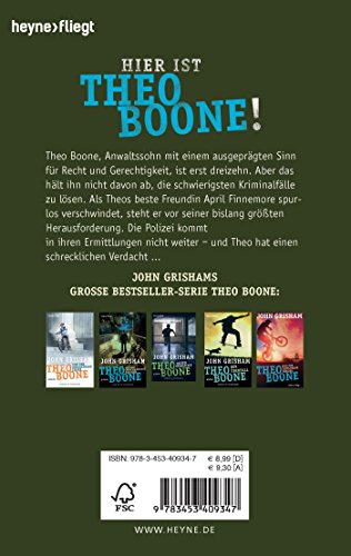Die Entführung seiner besten Freundin April – auch sein zweiter Fall verlangt Theo Boone alles ab Theo Boone, Anwaltssohn mit ausgeprägtem Sinn für Recht und Gerechtigkeit, ist erst dreizehn. Aber das hält ihn nicht davon ab, die schwierigsten Kriminalfälle zu lösen und die Strafprozesse live vor Gericht zu verfolgen. Ansonsten gehört Theos Leidenschaft seinem Hund Judge – und natürlich seiner besten Freundin April. Als diese plötzlich spurlos verschwindet, steht Theo vor der bislang grössten Herausforderung seiner jungen Karriere.
