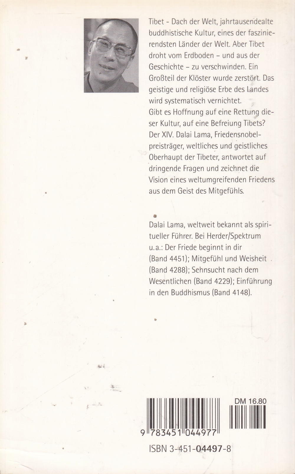 Der XIV. Dalai Lama, Friedensnobelpreisträger, weltliches und geistliches Oberhaupt der Tibeter, antwortet auf dringende Fragen und zeichnet die Vision eines weltumgreifenden Friedens aus dem Geist des Mitgefühls.