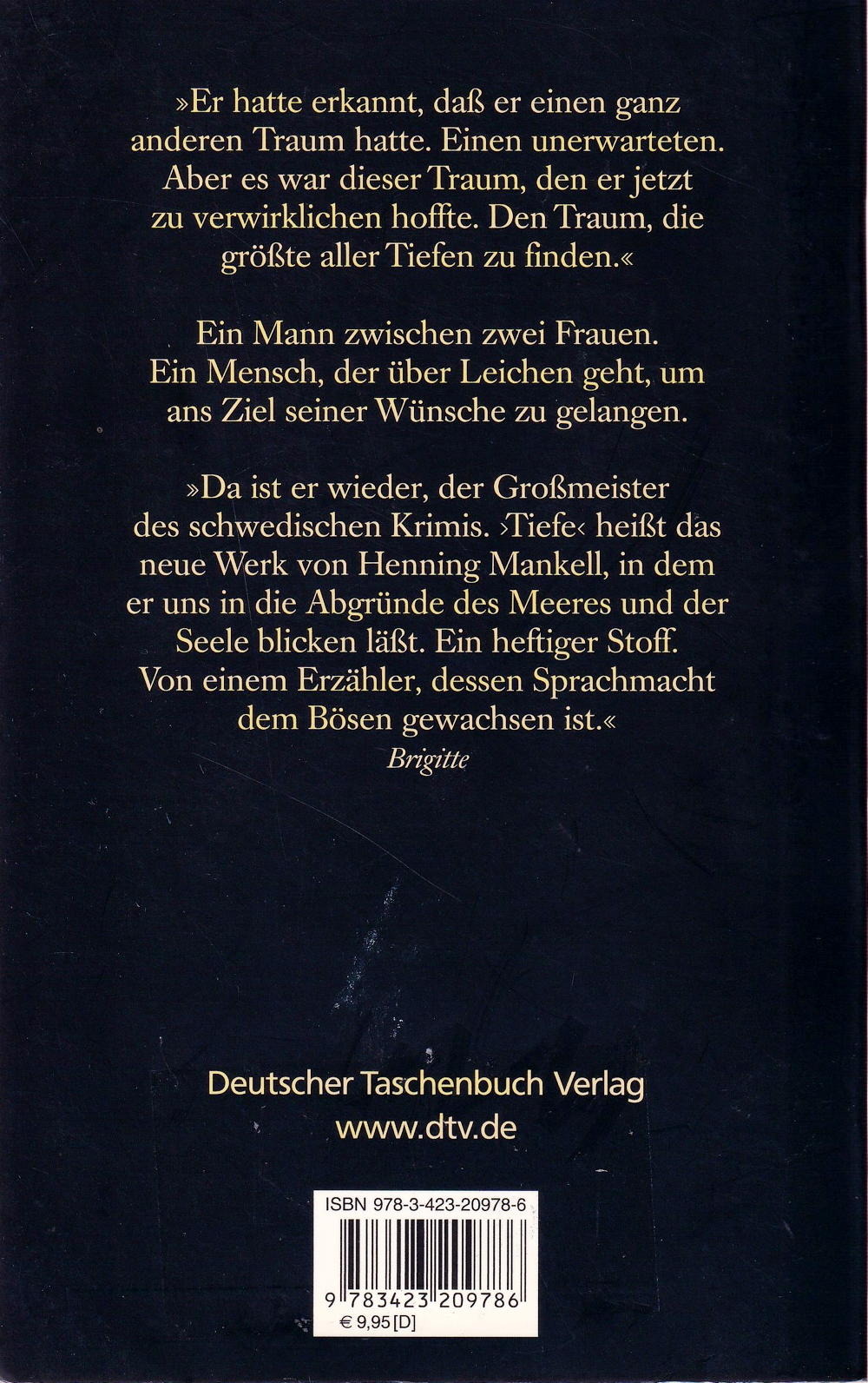 Über die Abgründe der Seele und des Meeres...der Bestseller von Henning Mankell jetzt im Taschenbuch Lars Tobiasson-Svartman ist Marineoffizier und Seevermessungsingenieur, ein Mann der Abstandmessung und des Abstandhaltens. Es ist die Zeit des Ersten Weltkriegs und er hat den militärischen Auftrag, in den Stockholmer Schären neue Fahrwasser auszuloten. Eines Tages trifft er auf einer der äussersten Schären eine einsam lebende Frau, Sara Fredrika. Es ist Liebe auf den ersten Blick. Doch bald geht sein Auftrag zu Ende, und zu Hause erwarten ihn seine Frau und ein geordnetes Heim. Um zu Sara Fredrika zurückkehren zu können, ersinnt er einen dreisten Betrug ... Ein Mann zwischen zwei Frauen. Ein Mensch, der über Leichen geht, um ans Ziel seiner Wünsche zu gelangen. Ein Roman über die finsteren Abgründe der Seele und das Böse in uns.