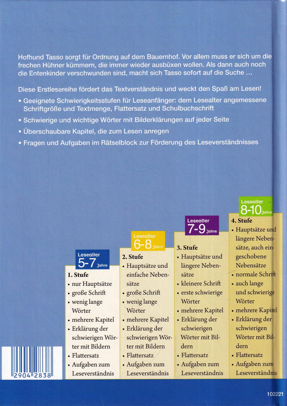 Hofhund Tasso sorgt für Ordnung auf dem Bauernhof. Vor allem muss er sich um die frechen Hühner kümmern, die immer wieder ausbüxen wollen. Als dann auch noch die Entenkinder verschwunden sind, macht sich Tasso sofort auf die Suche...