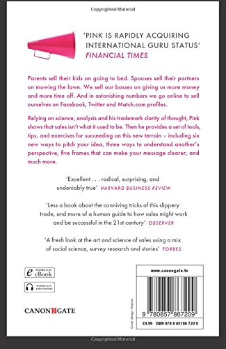 We're all in Sales now Parents sell their kids on going to bed. Spouses sell their partners on mowing the lawn. We sell our bosses on giving us more money and more time off. And in astonishing numbers we go online to sell ourselves on Facebook, Twitter and online dating profiles. Relying on science, analysis and his trademark clarity of thought, Pink shows that sales isn't what it used to be. Then he provides a set of tools, tips, and exercises for succeeding on this new terrain - including six new ways to pitch your idea, three ways to understand another's perspective, five frames that can make your message clearer, and much more.