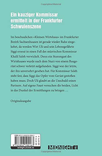 Ein neuer Fall für Kommissar Khalil SalehIm beschaulichen »Kleinen Wirtshaus« im Frankfurter Bezirk Sachsenhausen ist gerade wieder Ruhe eingekehrt, da werden Wirt Uli und sein Lebensgefährte Siggi erneut in einen Fall des mürrischen Kommissar Khalil Saleh verwickelt. Denn ein Stammgast des Wirtshauses wurde nach dem Sturz von einem Baugerüst schwer verletzt aufgefunden. Siggi war der letzte, der ihn unversehrt gesehen hat. Für Kommissar Saleh steht fest, dass Siggi das Opfer vom Gerüst gestossen haben muss. Doch Uli glaubt an die Unschuld seines Partners. Auf eigene Faust versuchen die beiden, Licht in das Dunkel der Ermittlungen zu bringen...