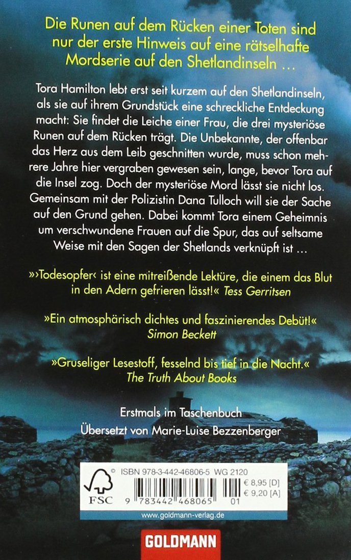 Tora Hamilton lebt erst seit kurzem auf den Shetlandinseln, als sie auf ihrem Grundstück eine schreckliche Entdeckung macht: Sie findet die Leiche einer Frau, die drei mysteriöse Runen auf dem Rücken trägt. Die Unbekannte war das Opfer eines brutalen Mordes, und gemeinsam mit der Polizistin Dana Tulloch will Tora der Sache auf den Grund gehen. Dabei kommt sie einem dunklen Geheimnis um verschwundene Frauen auf die Spur, das auf unheimliche Weise mit den Sagen der Shetlands verknüpft ist …