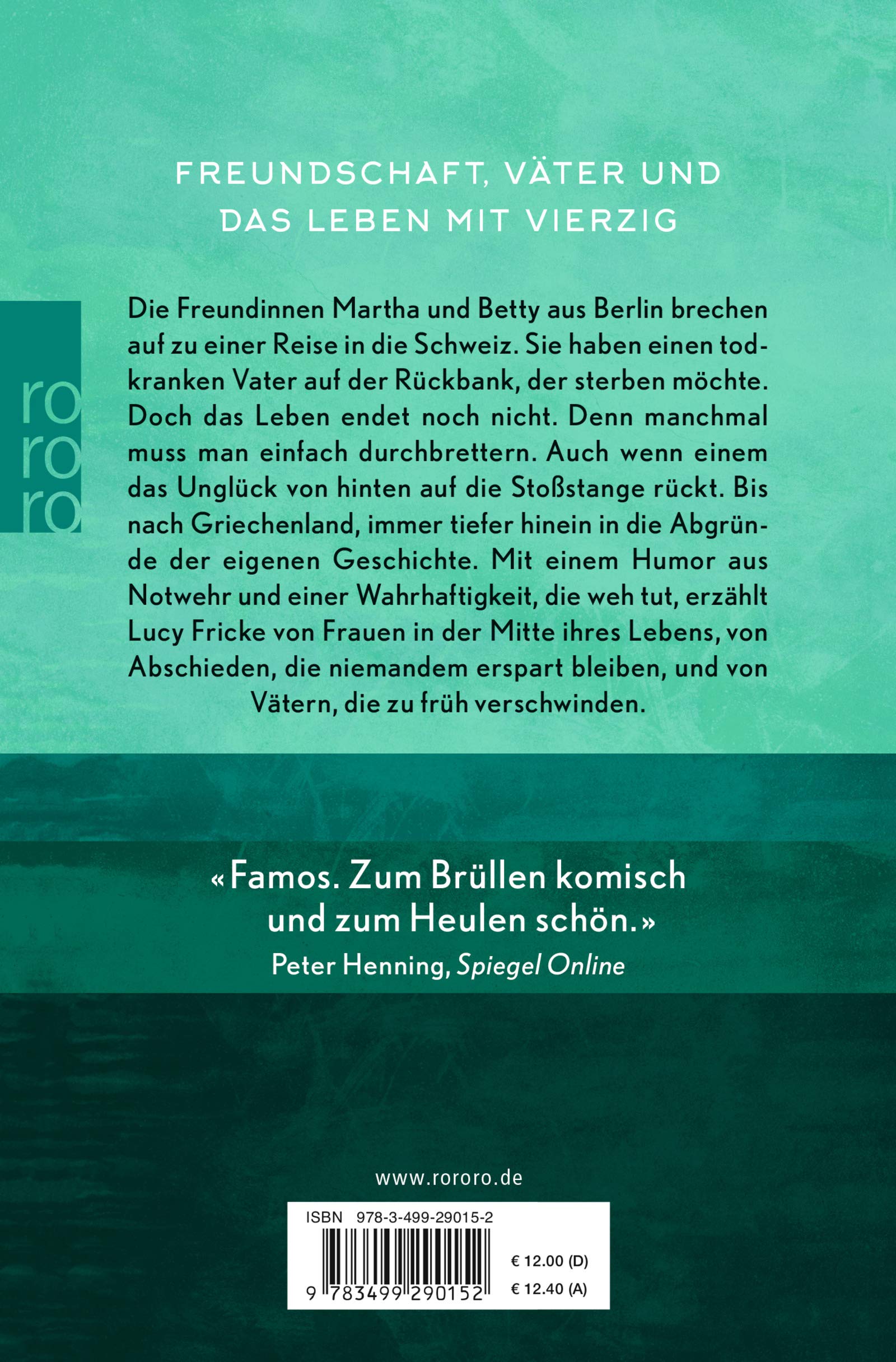 Der Spiegelbestseller über Freundschaft, Väter und das Leben mit Vierzig. Mit hinreissendem, messerscharfem Humor und einer perfekten Balance aus Leichtigkeit und Tiefsinn zugleich erzählt die deutsche Autorin von Frauen in der Mitte ihres Lebens, von Abschieden, die niemandem erspart bleiben, und von Vätern, die zu früh verschwinden. Die Freundinnen Martha und Betty aus Berlin brechen auf zu einer Reise in die Schweiz. Sie haben einen todkranken Vater auf der Rückbank, der sterben möchte. Doch das Leben endet noch nicht. Denn manchmal muss man einfach durchbrettern. Auch wenn einem das Unglück von hinten auf die Stossstange rückt. Bis nach Griechenland, immer tiefer hinein in die Abgründe der eigenen Geschichte.