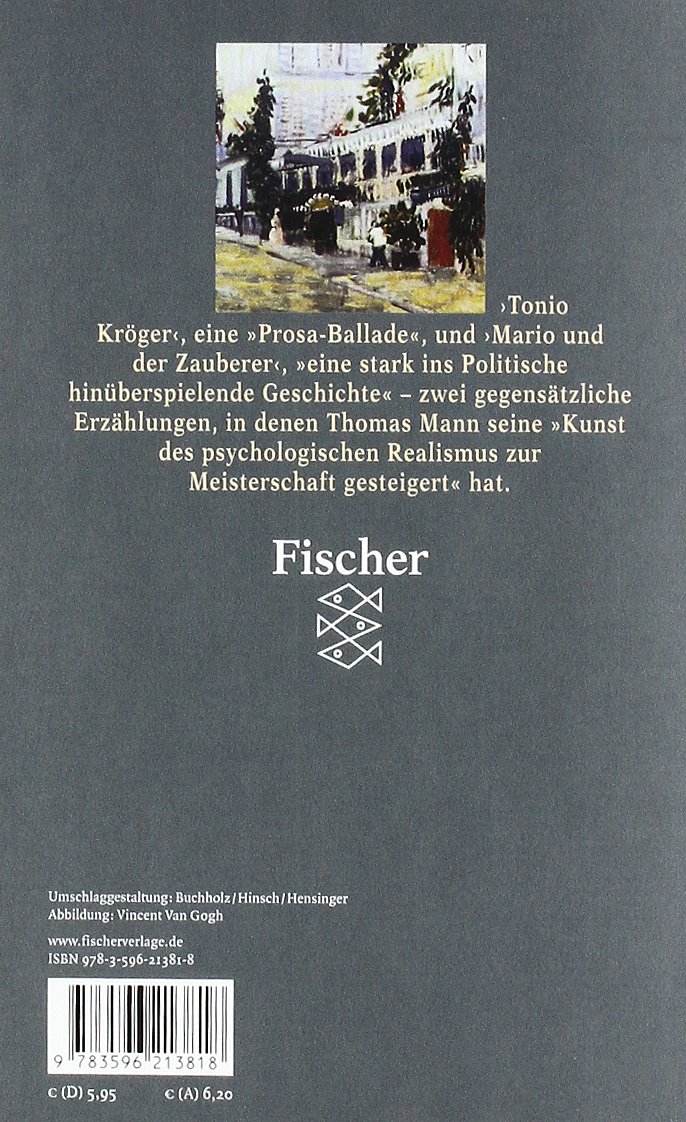 Zwei gegensätzliche Erzählungen Thomas Manns fasst dieser Band zusammen: 'Tonio Kröger', eine "Prosa-Ballade" aus dem Jahre 1903, die die "intellektuelle und radikale Jugend, die den Radikalismus damals freilich noch nicht politisch meinte", als "ihr gemäss" "ergriff", und 'Mario und der Zauberer' aus dem Jahre 1930, "eine stark ins Politische hinüberspielende Geschichte, die mit der Psychologie des Faschismus - und derjenigen der 'Freiheit', ihrer Willenslehre, die sie gegen den robusten Willen des Gegners so sehr in Nachteil setzt, innerlich beschäftigt ist". Damit ist Möglichkeit gegeben, sich beispielhaft mit dem Phänomen Literatur auseinanderzusetzen und zu erkennen, dass nicht die äussere Handlung, sondern Ansatz, Entwicklung und Durchführung eines Themas - bei Thomas Mann fast immer durch persönliche Distanz und vor allem durch skeptische Ironie geprägt - entscheidende Kriterien zu ihrer Interpretation sind.