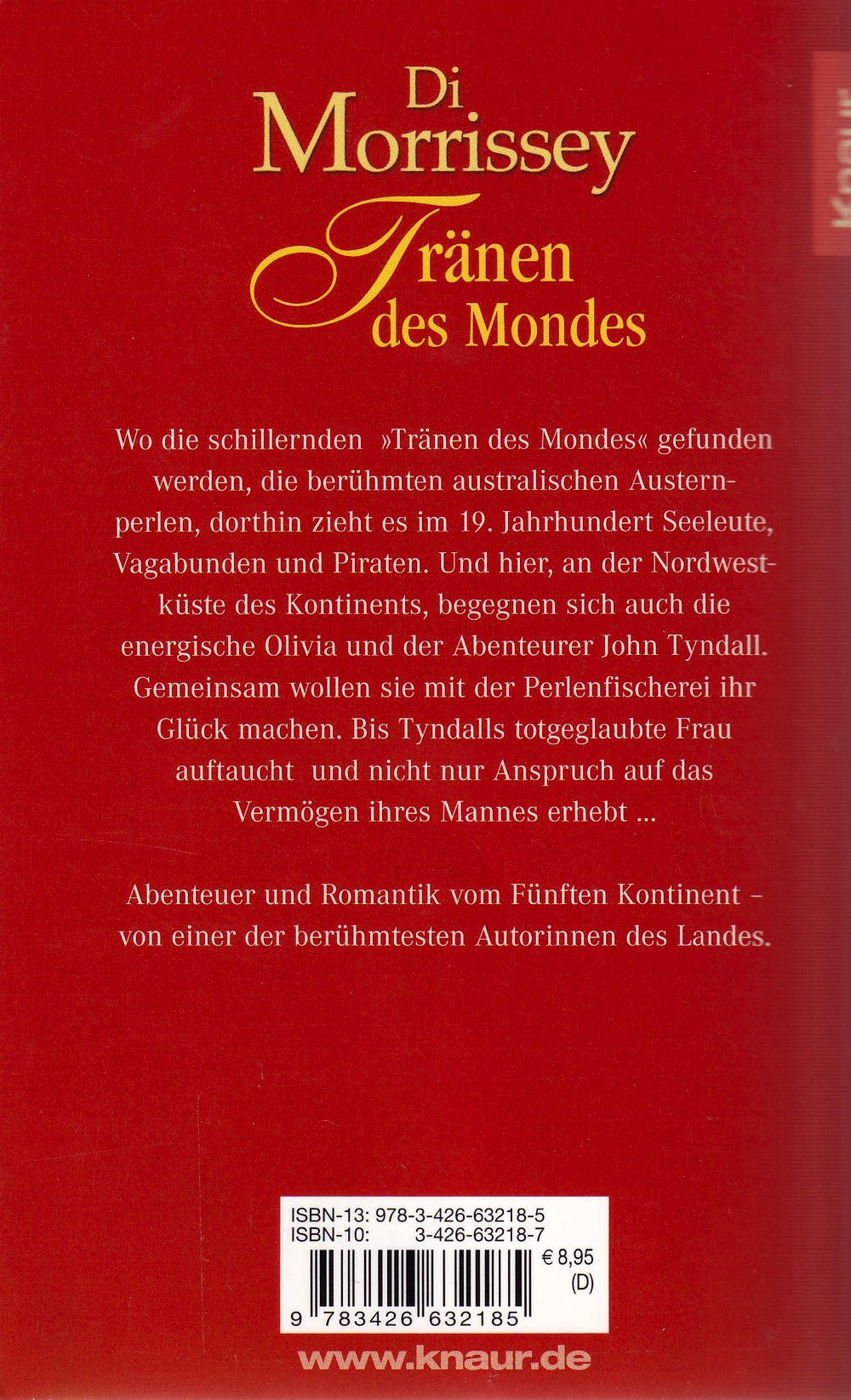 Wo die schillernden Tränen des Mondes gefunden werden, die berühmten australischen Austernperlen, dorthin zieht es im 19. Jahrhundert Seeleute, Vagabunden und Piraten. Und hier, an der Nordwestküste des Kontinents, begegnen sich auch die energische Olivia und der Abenteurer John Tyndall. Gemeinsam wollen sie mit der Perlenfischerei ihr Glück machen. Bis Tyndalls totgeglaubte Frau auftaucht und nicht nur Anspruch auf das Vermögen ihres Mannes erhebt.