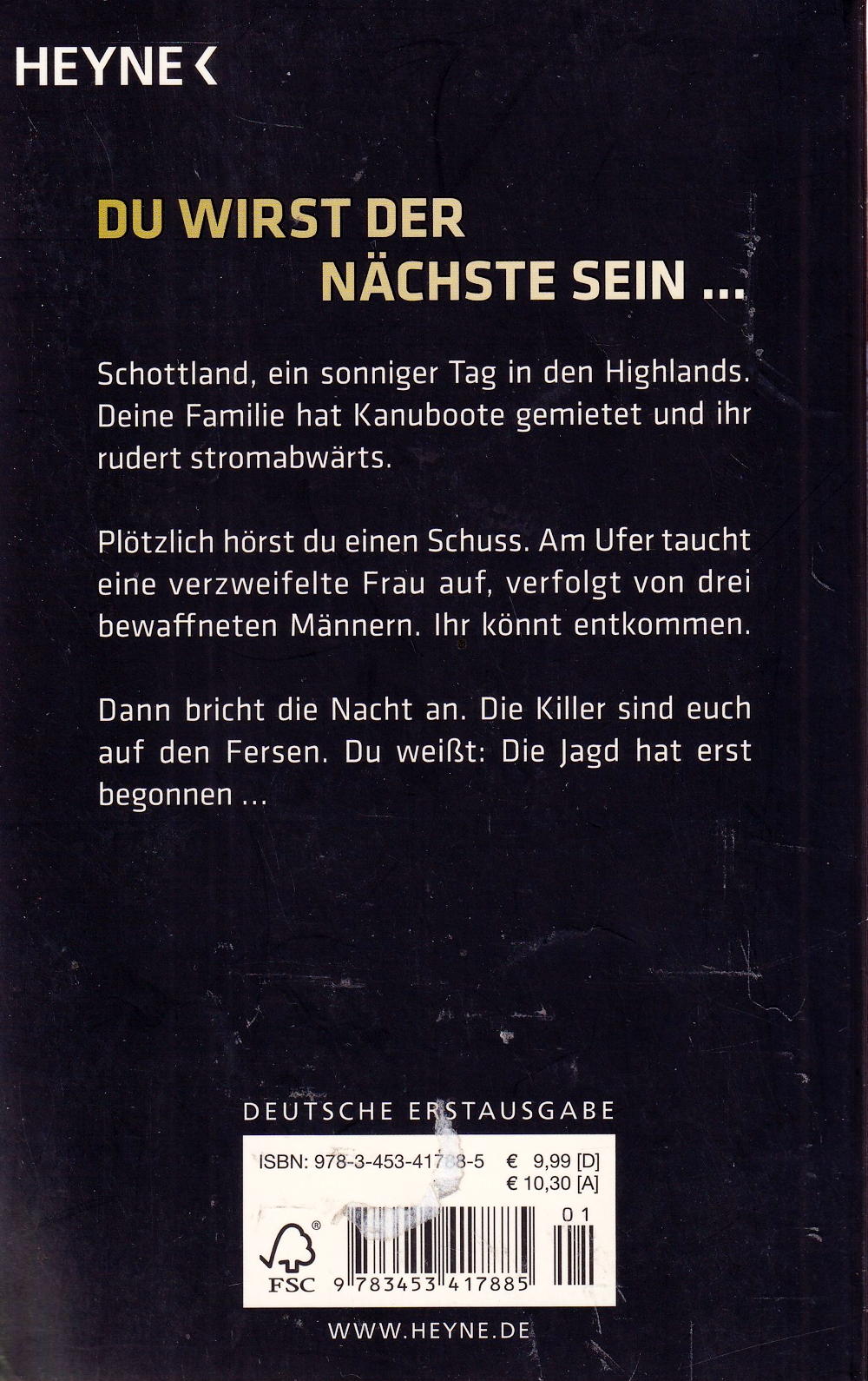 15.45 Uhr: Schottland, ein sonniger Tag in den Highlands. Ein ruhiger Fluss schlängelt sich durch den Wald. Deine Familie hat Kanus gemietet und ihr rudert stromabwärts. 16.03 Uhr: Du hörst einen Schuss. Am Ufer taucht eine Frau auf und fleht um Hilfe. Drei Männer verfolgen sie. Sie schießen auf euch. Ihr könnt entkommen. 16.35 Uhr: Deine Eltern sind tot. Deine kleine Schwester steht unter Schock. Du musst dich entscheiden. Du folgst der fremden Frau in den Wald. 18.44 Uhr: Die Nacht hält Einzug. Du weißt: Die Jagd hat erst begonnen ...