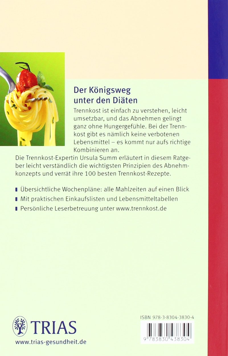 Die Trennkost-Expertin Ursula Summ erläutert in diesem Ratgeber leicht verständlich die wichtigsten Prinzipien des Abnehmkonzepts und verrät ihre 100 besten Trennkost-Rezepte.