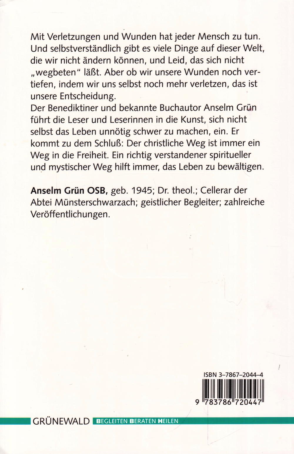 Der Benediktiner und bekannte Buchautor Anselm Grün führt die Leser und Leserinnen in die Kunst, sich nicht selbst das Leben unnötig schwer zu machen, ein. Er kommt zu dem Schluss: Der christliche Weg ist immer ein Weg in die Freiheit. Ein richtig verstandener spiritueller und mystischer Weg hilft immer, das Leben zu bewältigen.