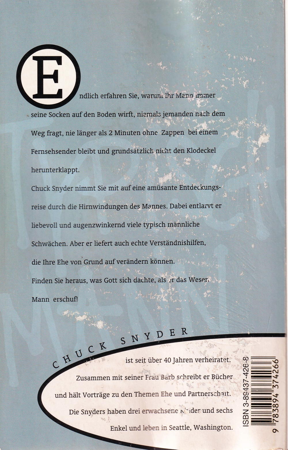Chuck Snyder nimmt Sie mit auf eine amüsante Entdeckungsreise durch die Hirnwindungen des Mannes. Dabei entlarvt er liebevoll und augenzwinkernd viele typisch männliche Schwächen. Aber er liefert auch echte Verständnishilfen, die Ihre Ehe von Grund auf verändern können.
