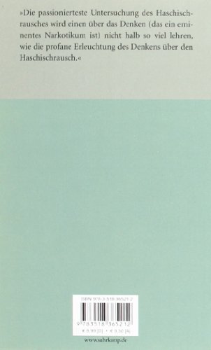 Über Haschisch enthält ausser dem bekannten Text »Haschisch in Marseille« eine an entlegener Stelle veröffentlichte Haschischgeschichte sowie zahlreiche, bisher unveröffentlichte Protokolle und Berichte von Drogenexperimenten, die Benjamin in den Jahren 1927 bis 1934 gemeinsam mit Freunden unternahm. Die Protokolle stellen Material zu einem geplanten Buch über Haschisch dar.