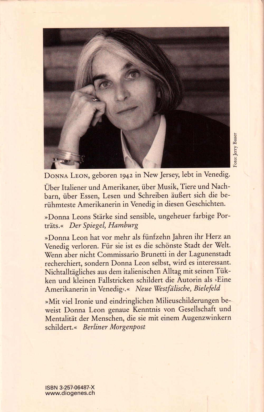 »Donna Leons Stärke sind sensible, ungeheuer farbige Porträts. « Der Spiegel, Hamburg »Donna Leon hat vor mehr als fünfzehn Jahren ihr Herz an Venedig verloren. Für sie ist es die schönste Stadt der Welt.
